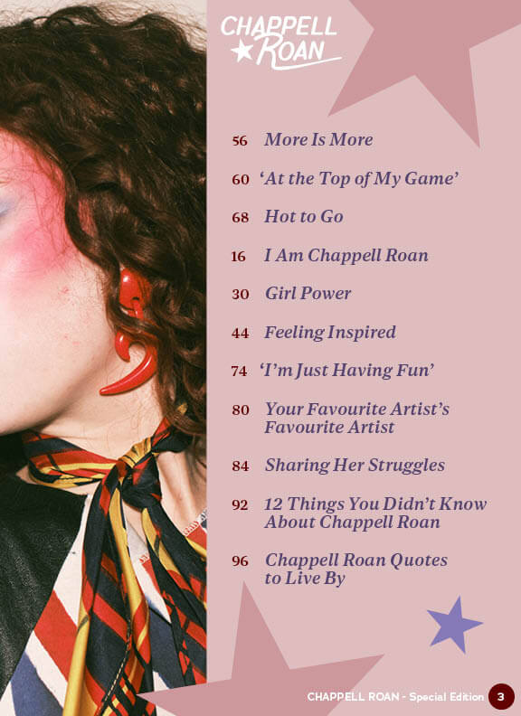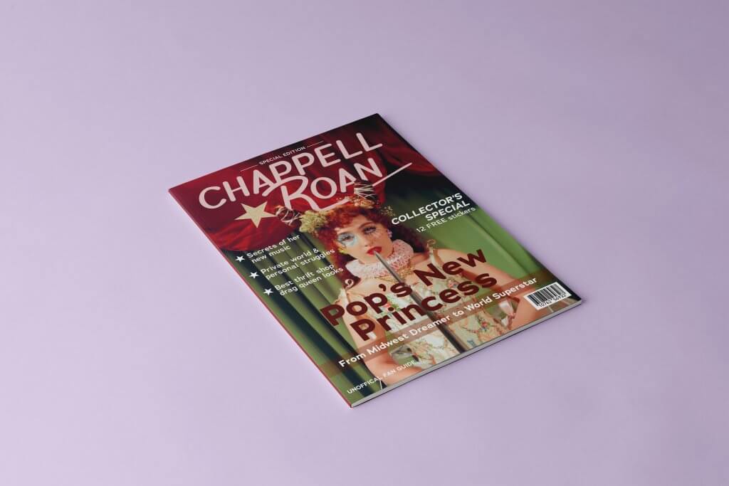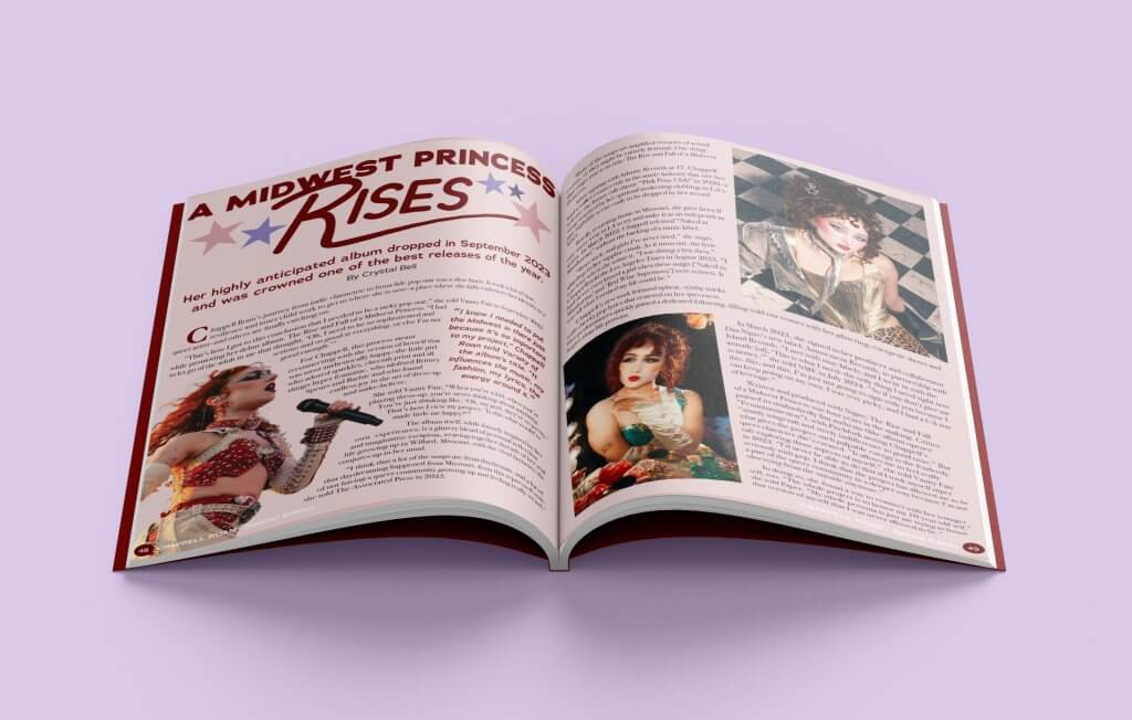 This concept magazine includes a cover, a contents spread and an article spread. The task at hand for this was to redesign an existing publication, which included taking a multi-page article and condensing it into a two-page spread. I aimed to keep the fun, sparkly vibe that Chappell Roan has built her brand on, while giving the publication a cohesive and pleasing visual identity.